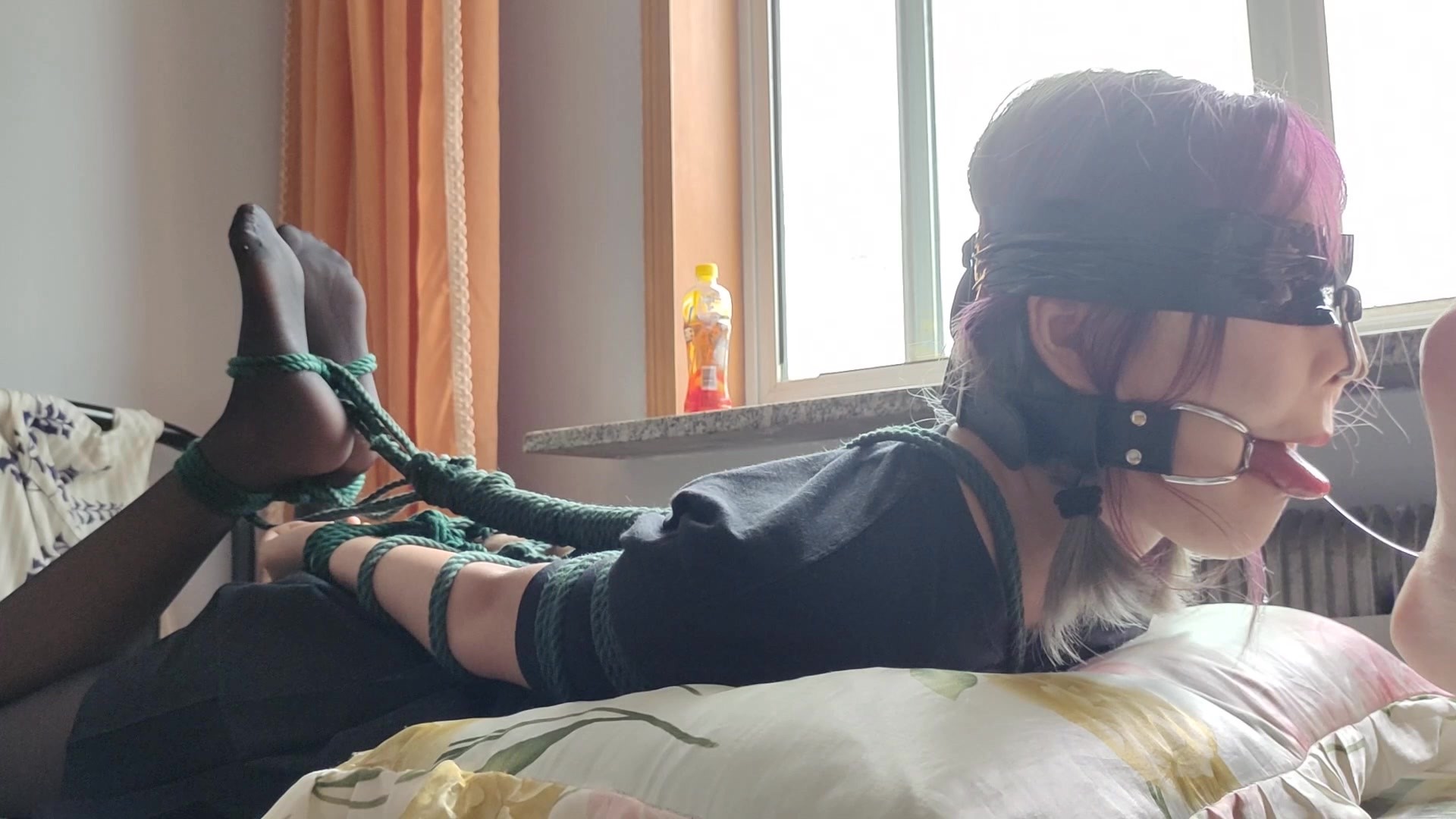 本次带来的是m属性美少女的舔足训练,既然是只m,那舌头不练一下是肯定不行的!驷马绑住动弹不得之后带上口环鼻勾,博主原味臭袜堵嘴!后面进行第一次的舔脚训练!第一次训练妹子很青涩哦,不过舔的还是蛮认真的,爽极了!