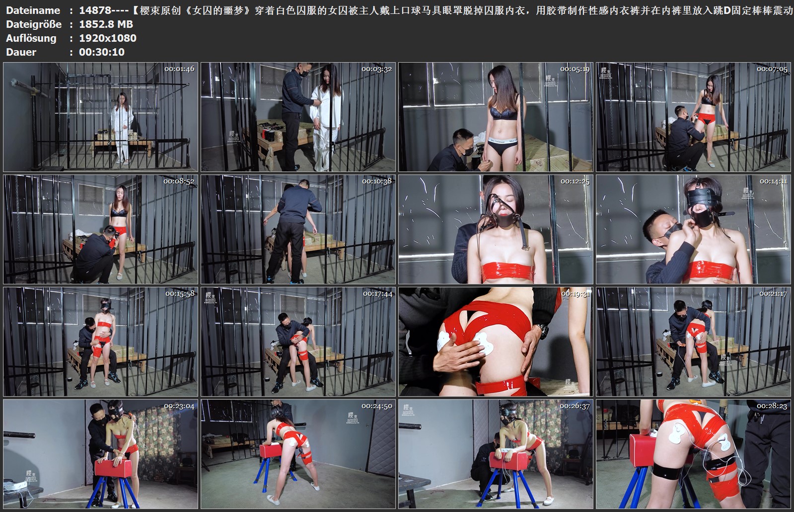 【樱束原创】《女囚的噩梦》穿着白色囚服的女囚被主人戴上口球马具/眼罩脱掉囚服内衣,用胶带制作性感内衣裤并在内裤里放入跳D固定棒棒震动 抚摸TK/SP!带出牢房开腿翘臀戴上鼻勾固定抬...