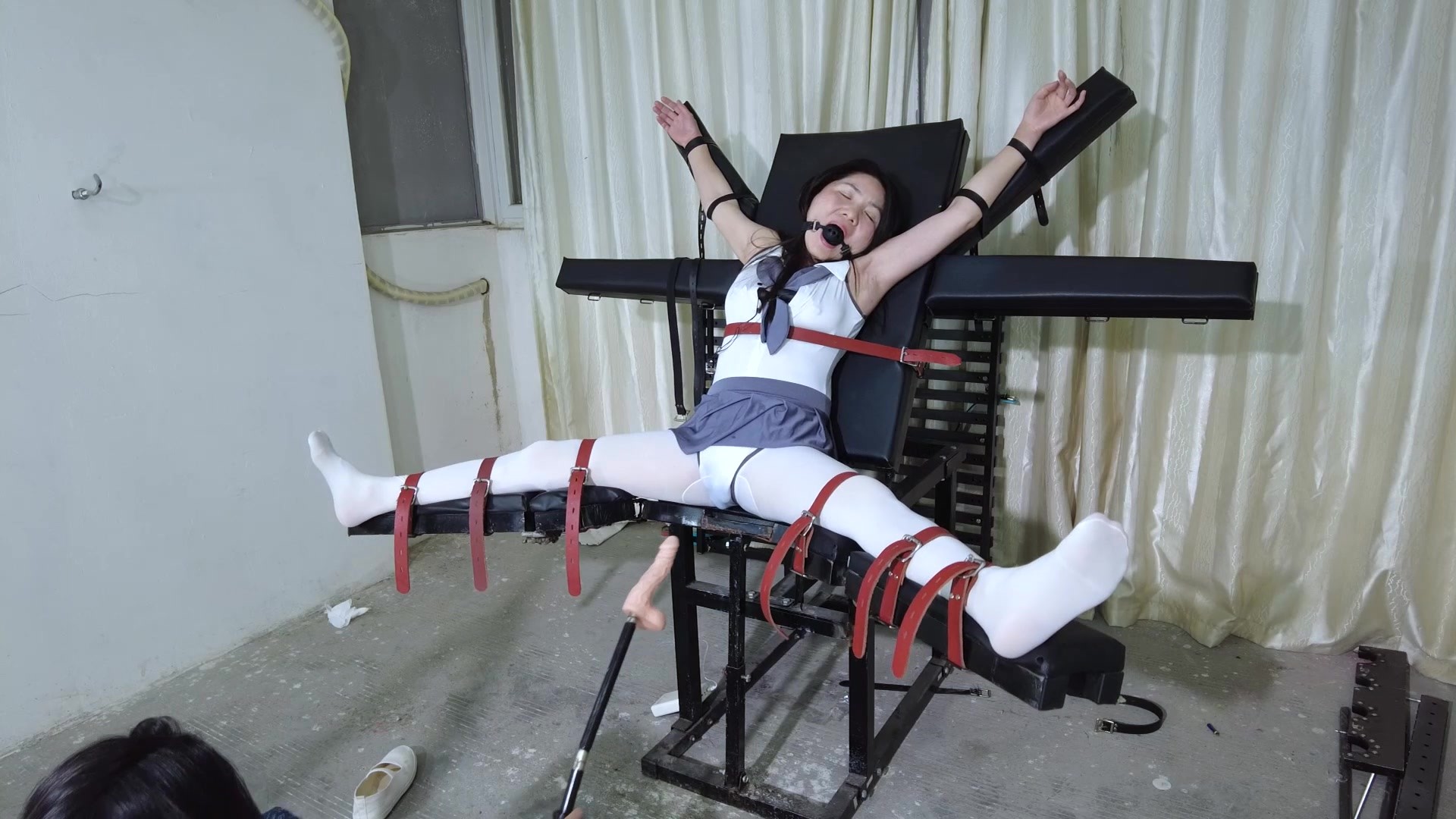 【缚心室】80多斤女学生的拘束架折磨小合集,啵啵贝VS炮机,两种
