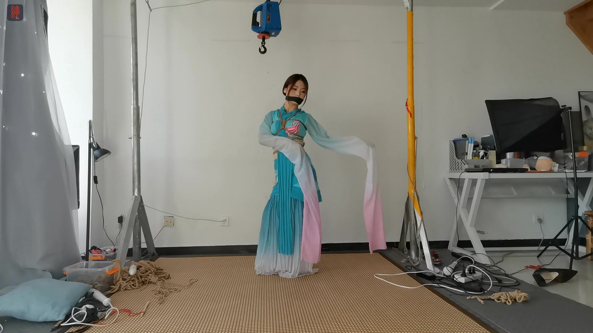 【绳之韵】赤脚跳舞的小九妹,自带捆绑属性的水袖上集:绳捆索绑的水袖舞以及传统水袖舞服的另类捆绑功能开发