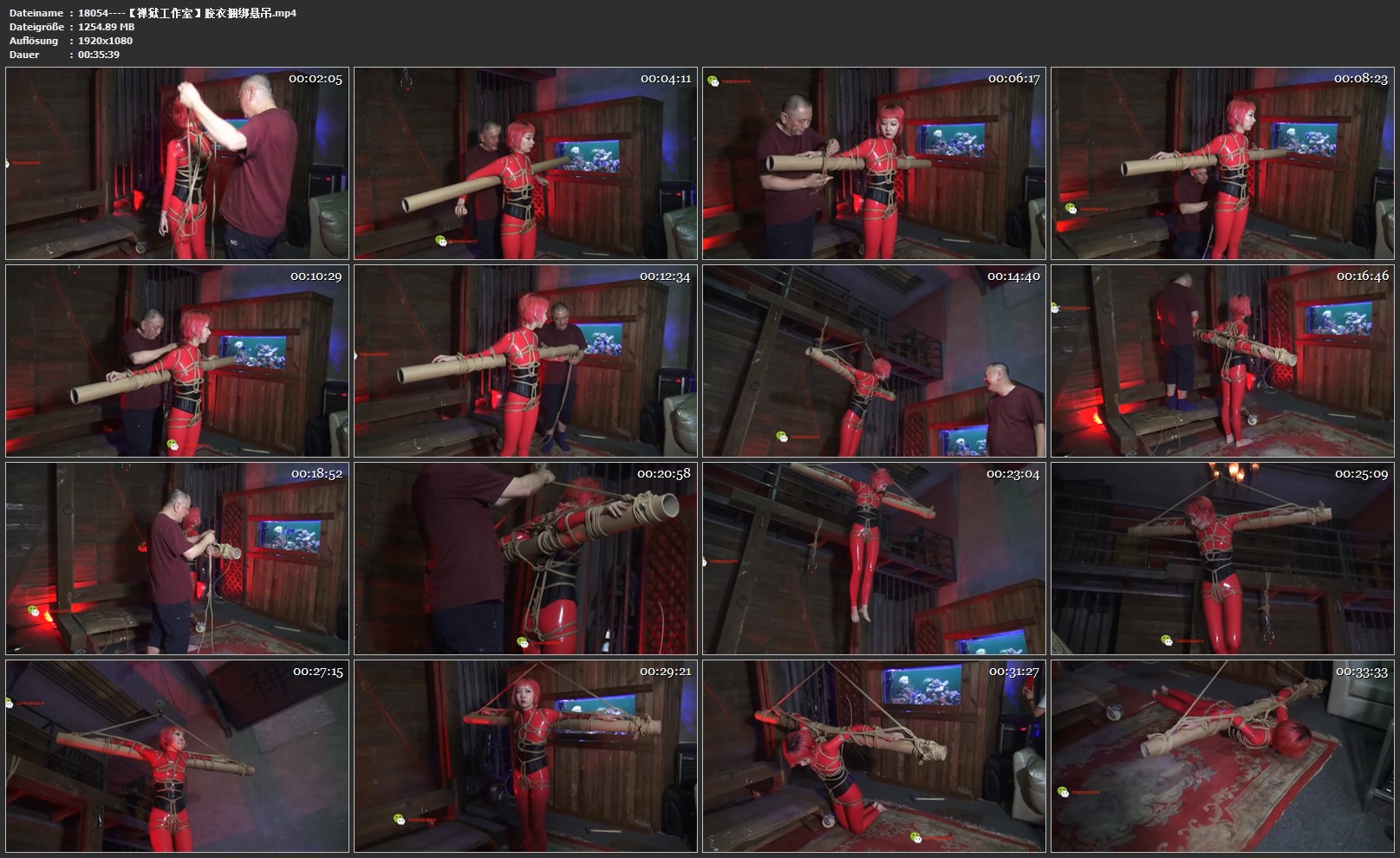 红色胶衣美女一字捆绑悬吊,凄楚美丽在精湛的绳艺技艺下彰显的淋漓极致,是不多得的