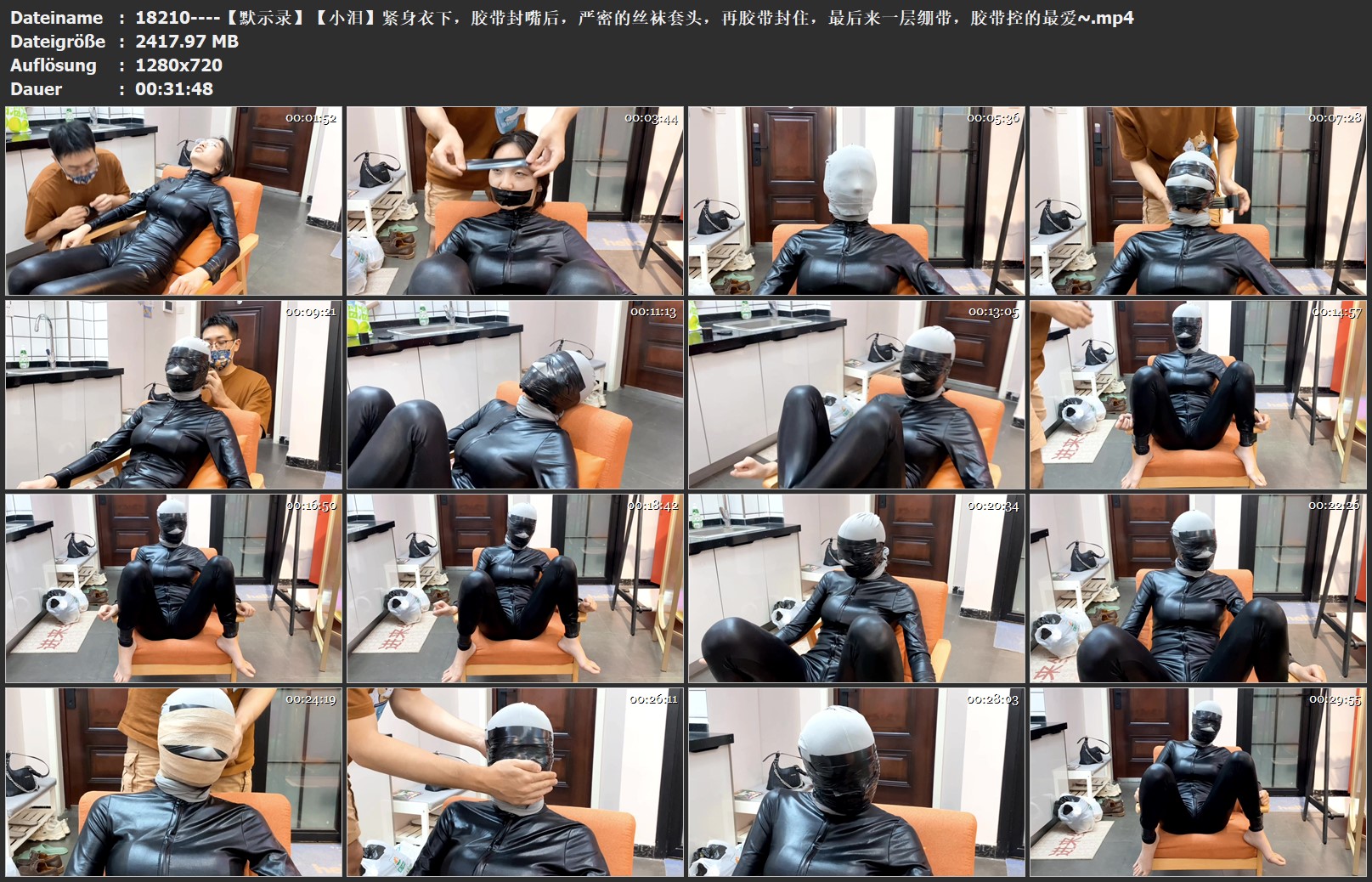 【默示录】【小泪】紧身衣下,胶带封嘴后,严密的丝袜套头,再胶带封住,最后来一层绷带,胶带控的最爱~