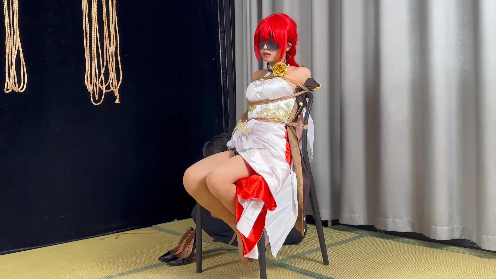 【象人工作室】小0-姬子cos,多胶带封嘴,椅缚挣扎!
