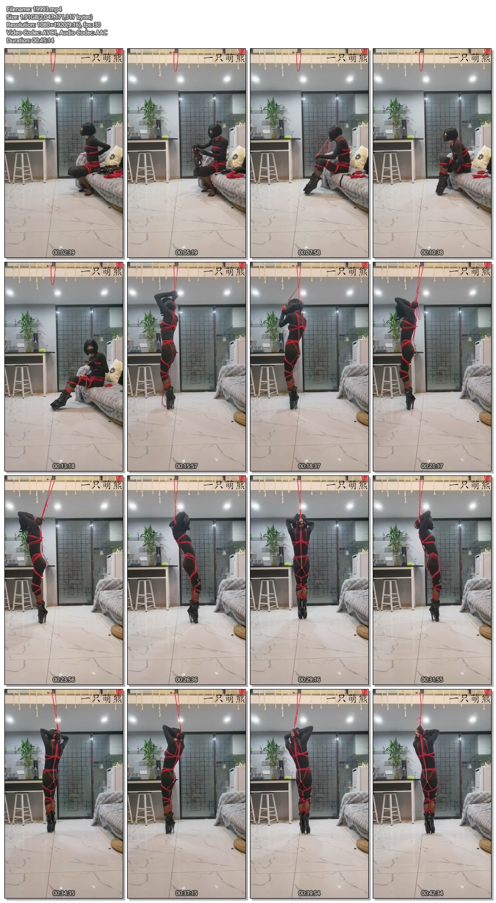 【一只萌熊】自缚16cm高跟电击肛钩头套口球绑腿脚铐拿钥匙
