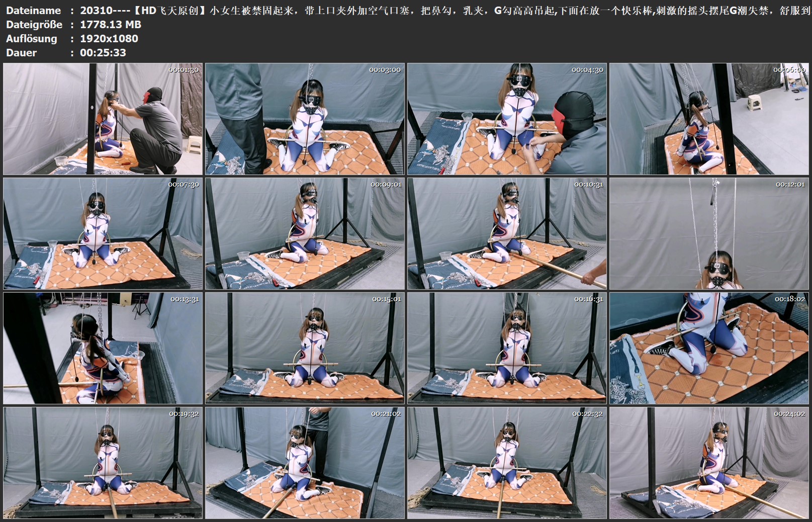 【HD飞天原创】小女生被禁固起来,带上口夹外加空气口塞,把鼻勾,乳夹,G勾高高吊起,下面在放一个快乐棒,刺激的摇头摆尾G潮失禁,舒服到极点
