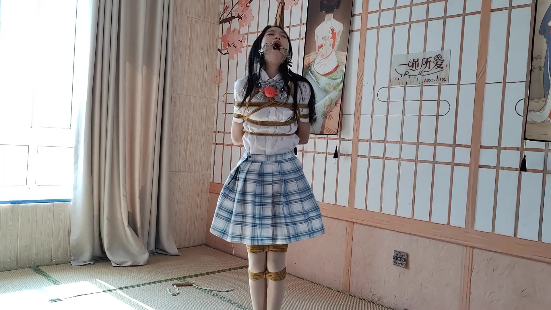 【一绳所爱】新模小英《日式吊缚站立放置》超长时间放置,堵嘴元素比较多,口球,木棍,口枷,口枷嘴撑到最大,口枷整整咬了半小时,低血糖整整坚持了一小时,差点哭了