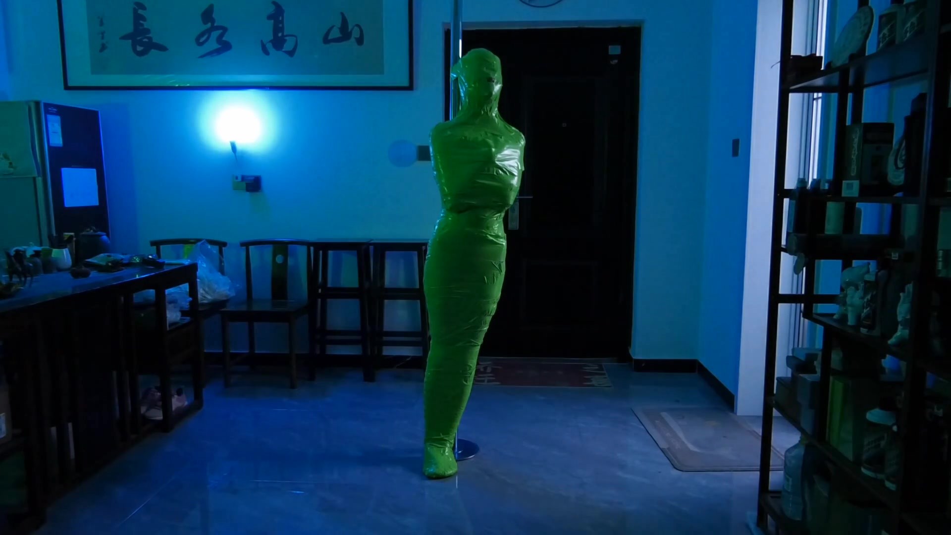 女王把女M全身缠绕固定在钢管上,包括脚、嘴巴、头等全包裹,只留下一个鼻孔出气,女M被全身包裹像个蛆虫还不老实最后被女王站立固定放置