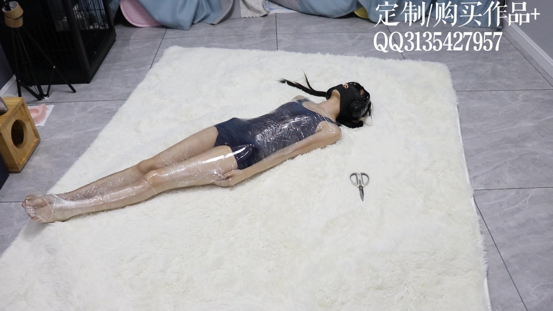 【咕咕原创】茶茶保鲜膜全包木乃伊脱缚挑战1——死库水双马尾小萝莉的感官剥夺、脱缚挑战、放置play