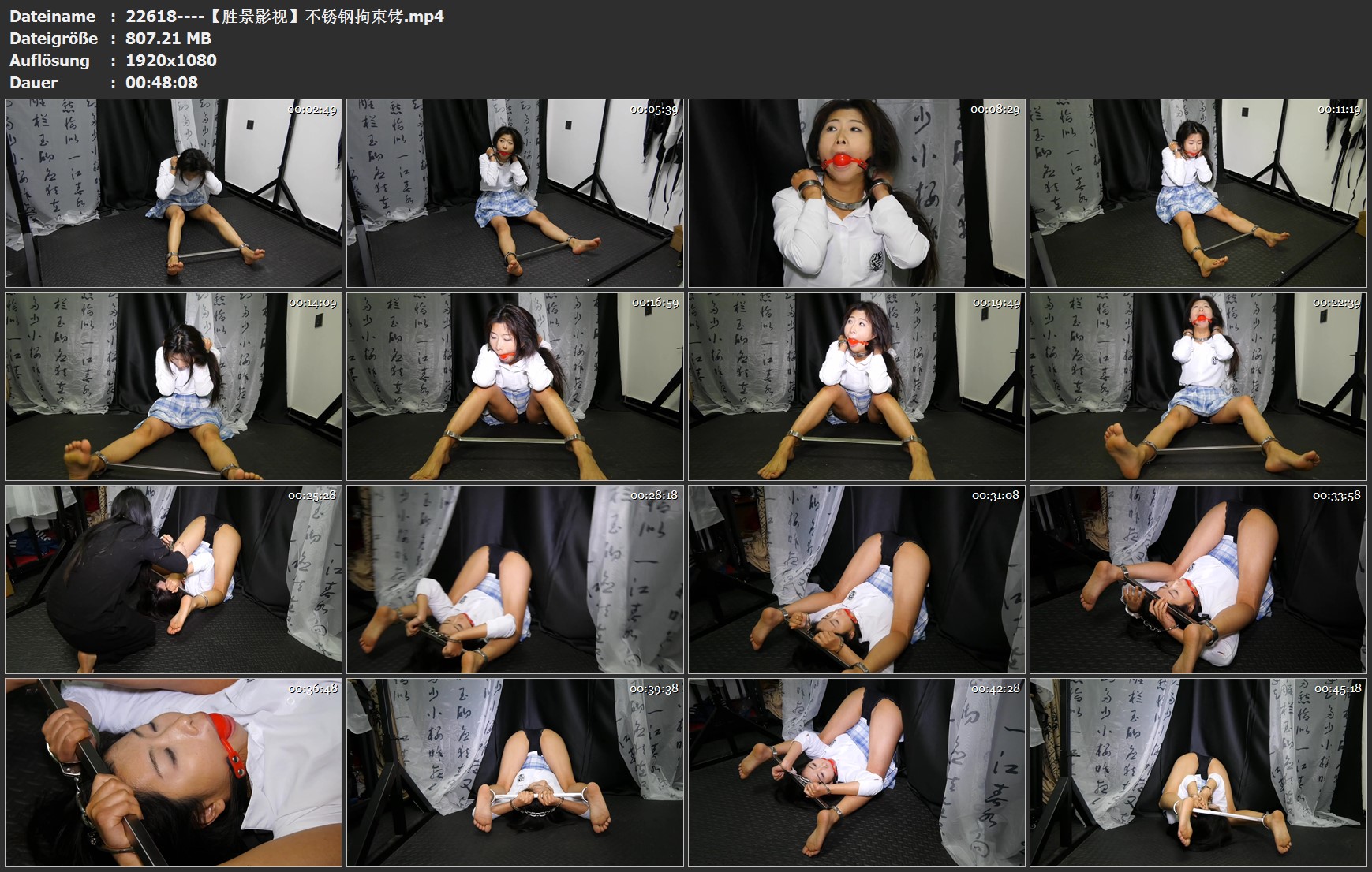 JK装女M,戴着口球被拘束钢铐束缚手脚,接着四脚朝天拘束手脚,女M柔韧性非常强