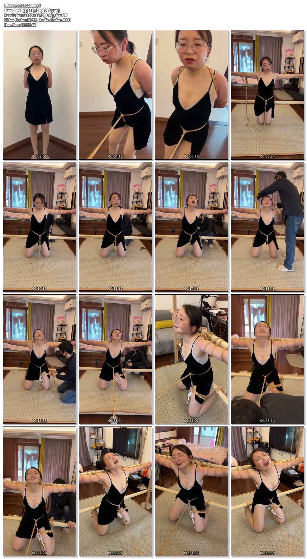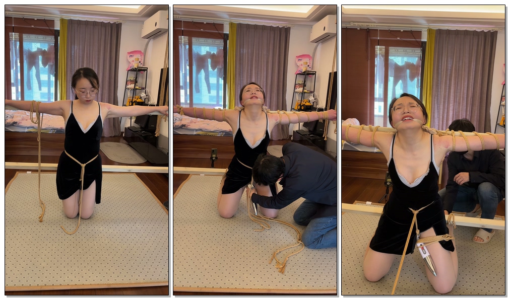 这次固定两根横杆,双臂平展搭在上面的横杆上,双脚分开脚腕在低的横杆上,挑逗,扯股绳,TK,最后头发绑在横杆上强迫抬头,并用丝袜勒嘴,AMB强高。麦子说她被固定好不能动,GC的[X_X]让她达到了顶峰,看来以后得经常固定他了