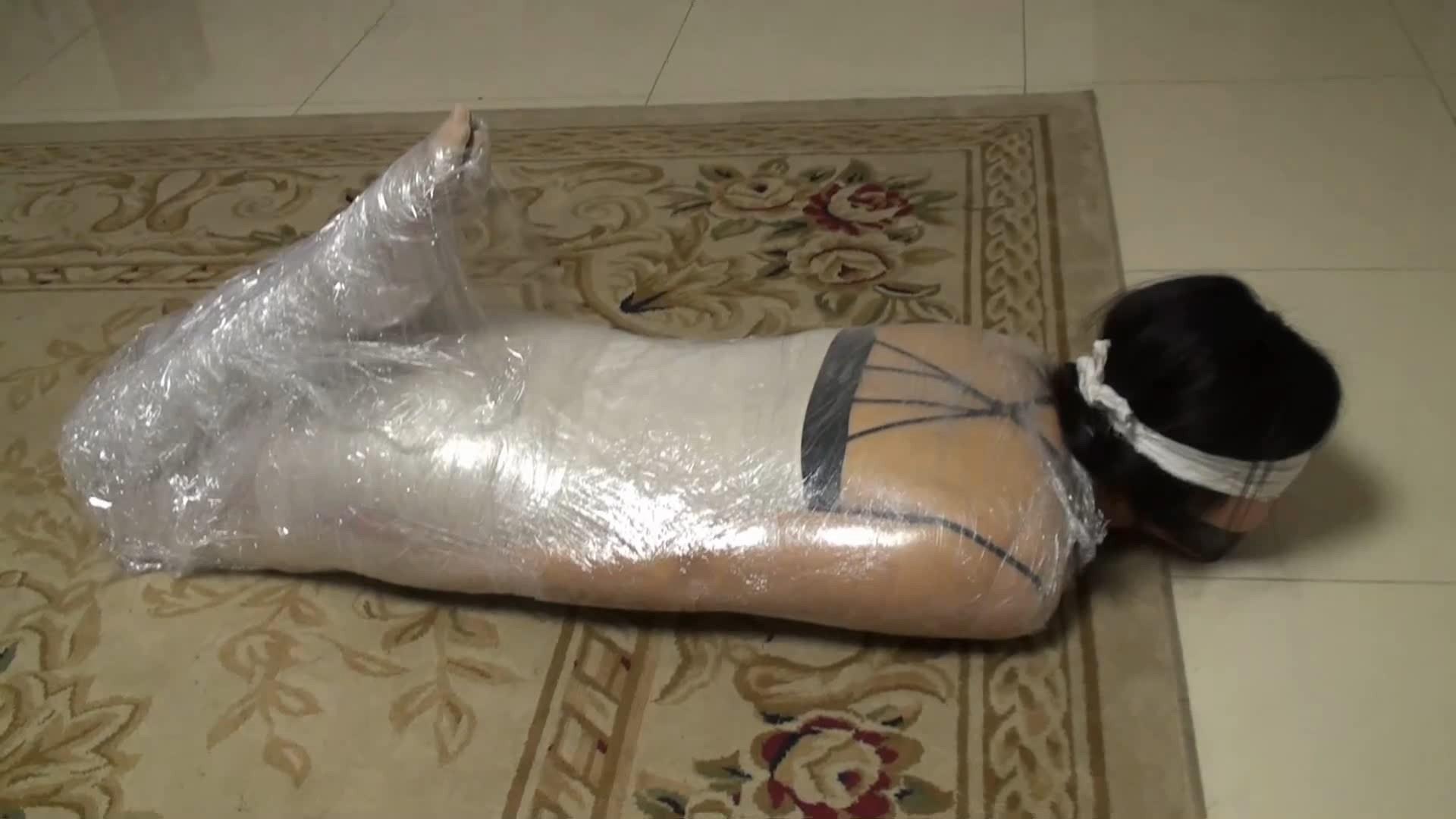 林丹丹被保鲜膜全包着,连身子都无法转动。