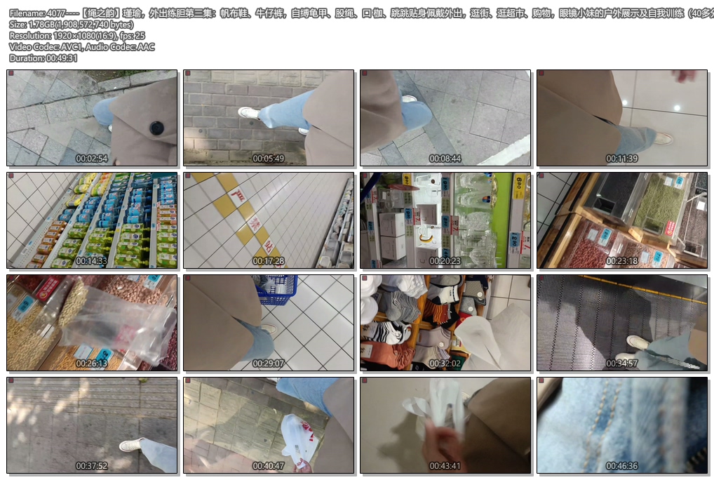瑾瑜,外出练胆第三集:帆布鞋、牛仔裤,自缚龟甲、股绳、口枷、跳跳贴身佩戴外出,逛街、逛超市、购物,眼镜小妹的户外展示及自我训练(40多分钟户外、超市购物纯纪实自拍,友情提示:45分30秒处有“彩蛋”