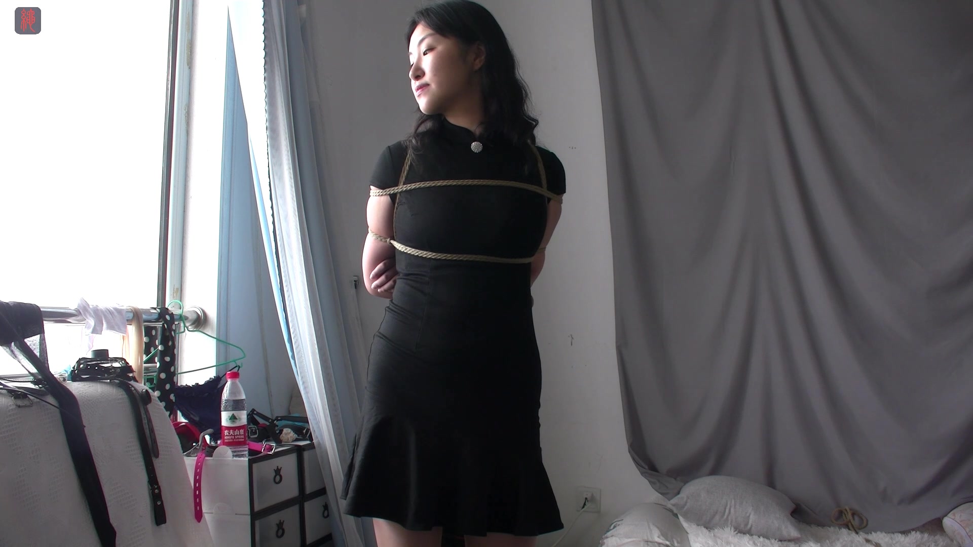 海伦中式超短裙、高跟鞋、后高手、股绳摩擦、DD固定、公寓楼捆绑外出、“黑屋探险”、爬楼梯 、绳奴日常训练。小丫头是第一次尝试被绑着(还被在下面塞了一个嗡嗡乱叫的小玩意)走到室外,室外拍摄全程大概持续了十来分钟,除了回工作室碰到楼道里有人说话和开门的时候有点紧张之外,其他时间的表现堪称是淡定自若,很不错的苗子啊