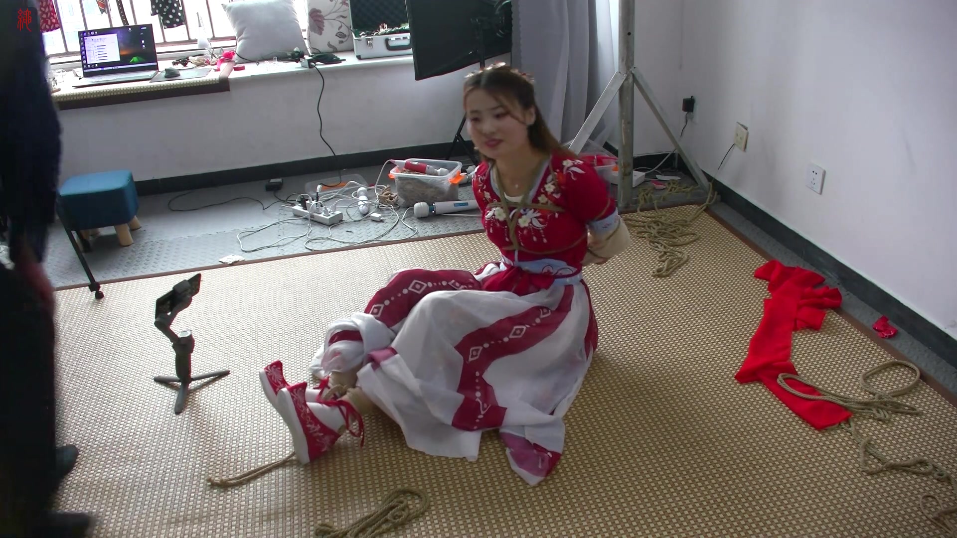 小九妹古装绳韵第二部:惊艳古装、白袜,五花坐缚+变种驷马、勒嘴,捆绑亵玩古装小美妞
