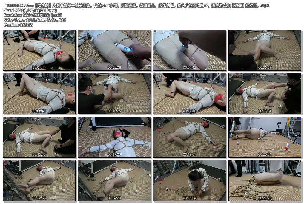 【绳之韵】人妻李婷第二拍第四集,肉丝OL一字缚、反叠双脚,羞耻固定、胶带封嘴。素人少妇无助的TK、强高游戏和【倔强】的丝足。